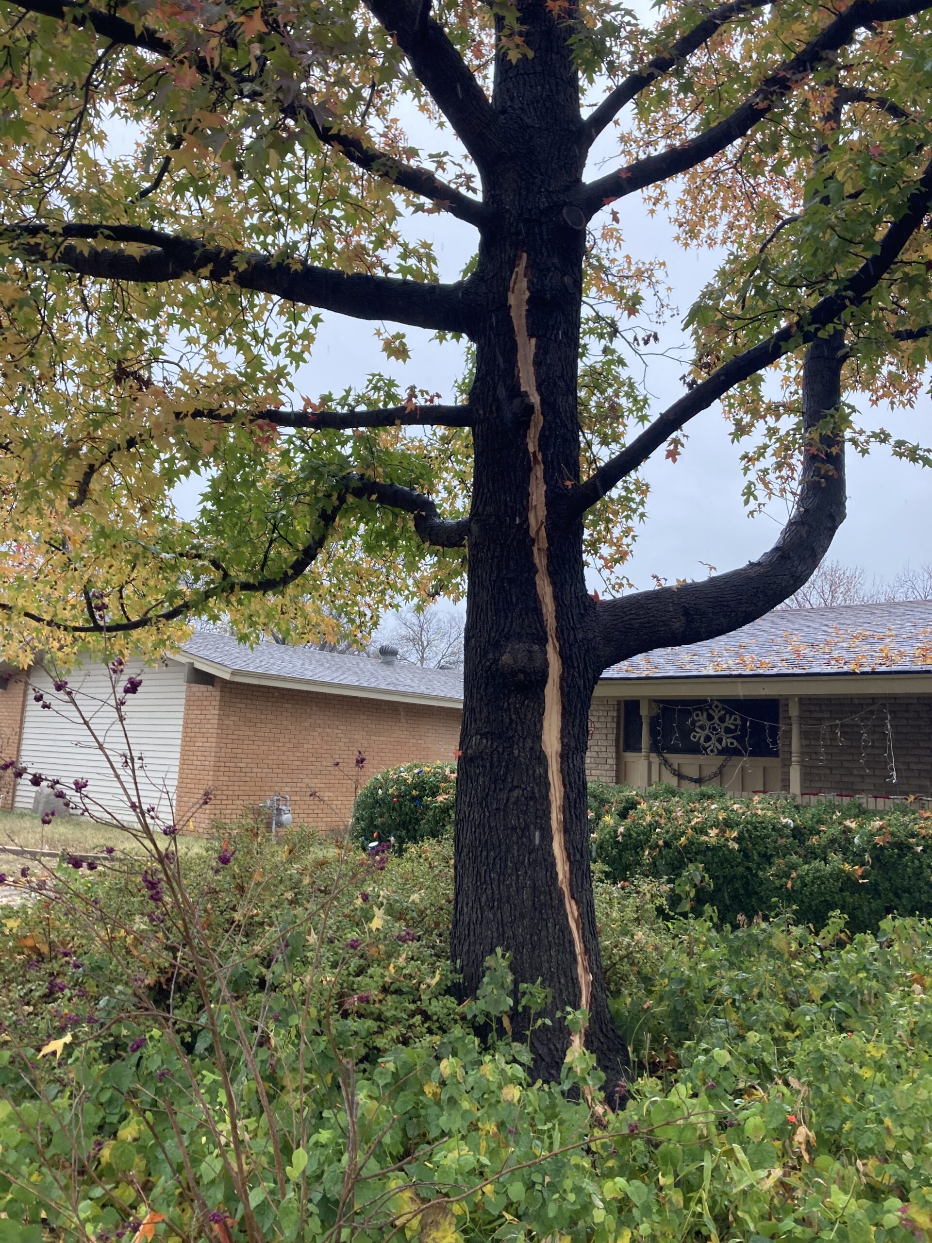 First, lightning struck a tree out front.