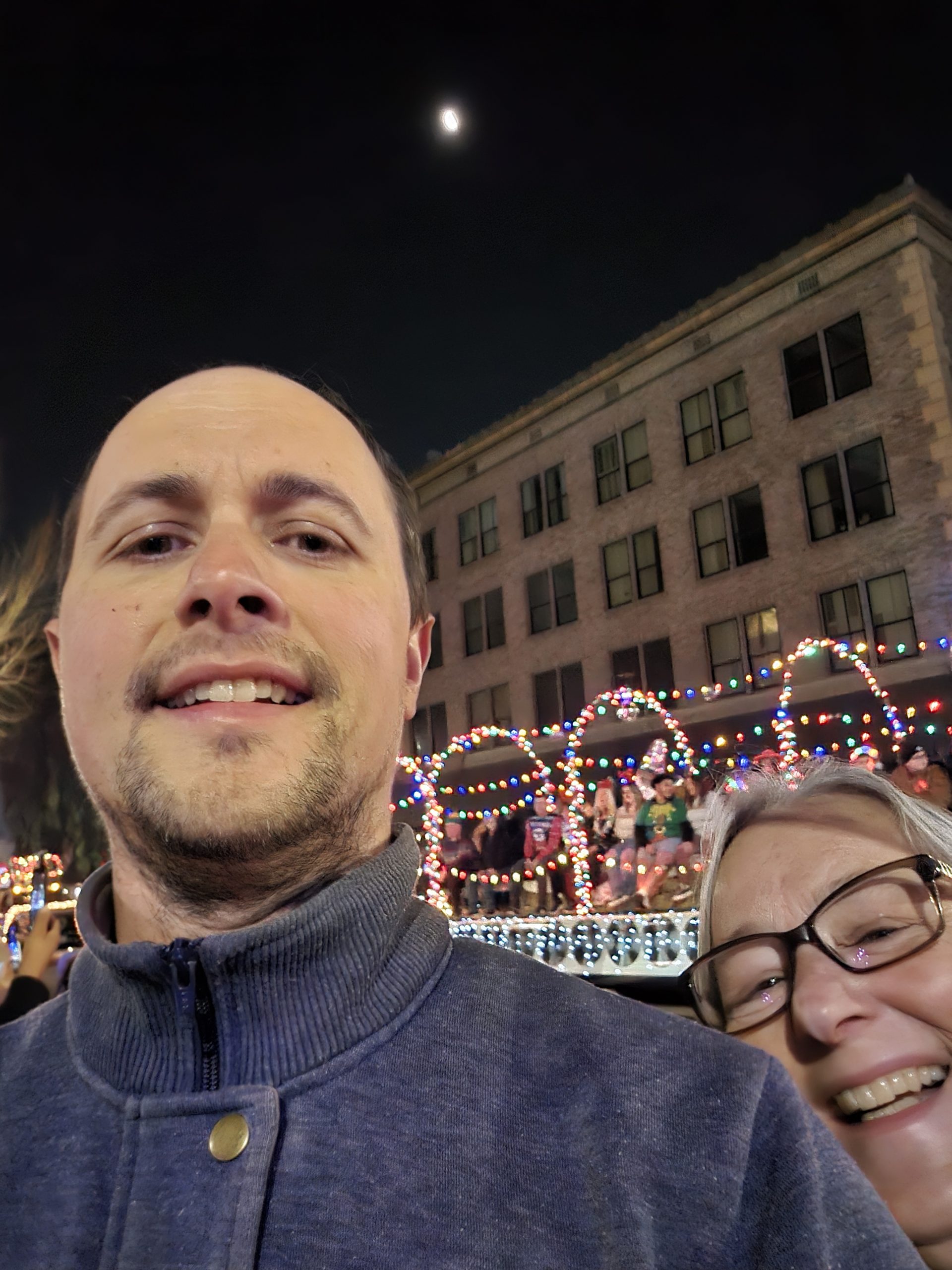 When Sam and I went to Modesto’s lighted parade, I paid close attention to the entries once I realized it was another way to get to know the community. We’re slowly learning our neighbor’s names. When running with Fang on Modesto’s terrific rail-to-trail conversion through the center of town, I try to say ‘Good Morning’ to every one I pass. I’m not the only regular on the trail and we are starting to recognize each other, which is sweet. Modesto is full of friendly people, and some meet up on the trail for group walks and morning chats. Yesterday, several families met at the Roseburg Square picnic tables next to the trail to celebrate the new year. One family pedaled up in a Bunch Bike, so I had to say something to them about being from Denton.
